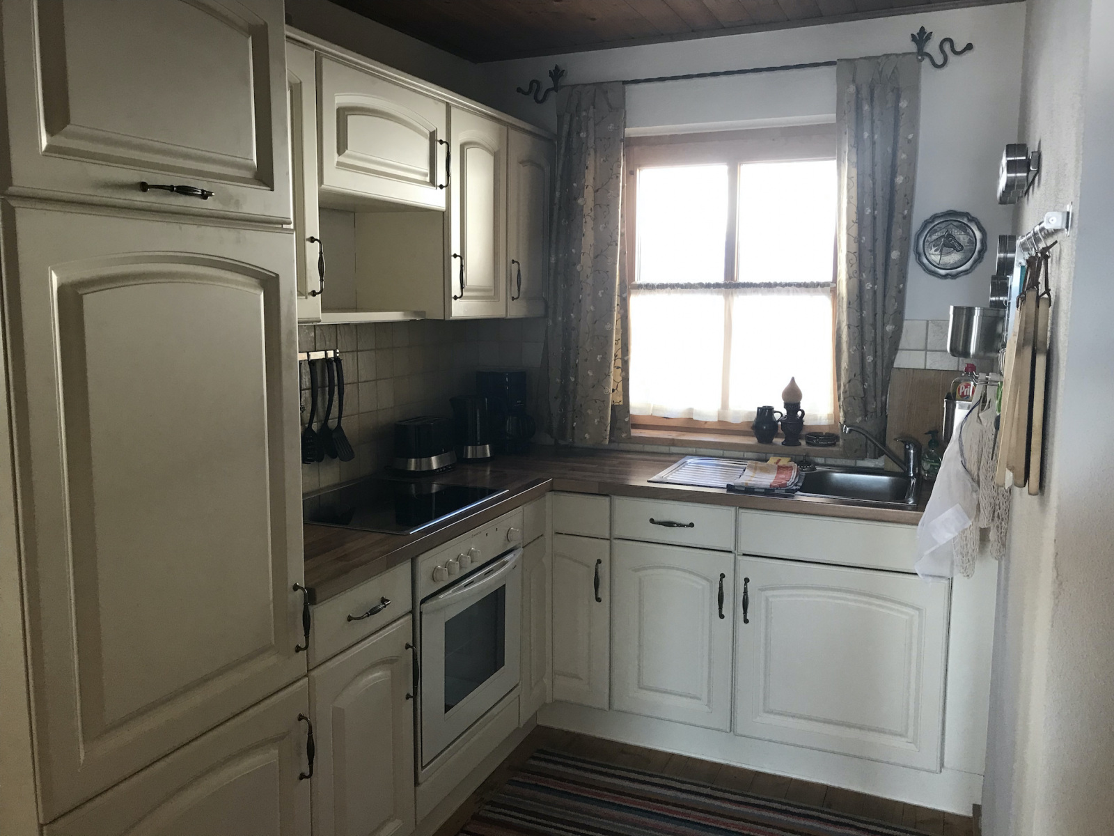 Kaffeemaschine, Wasserkocher, Toaster, Geschirr, Besteck, Backofen, Herdplatten, Töpfe, Pfannen, Pürierstab, Kühlschrank, Raclette-Set