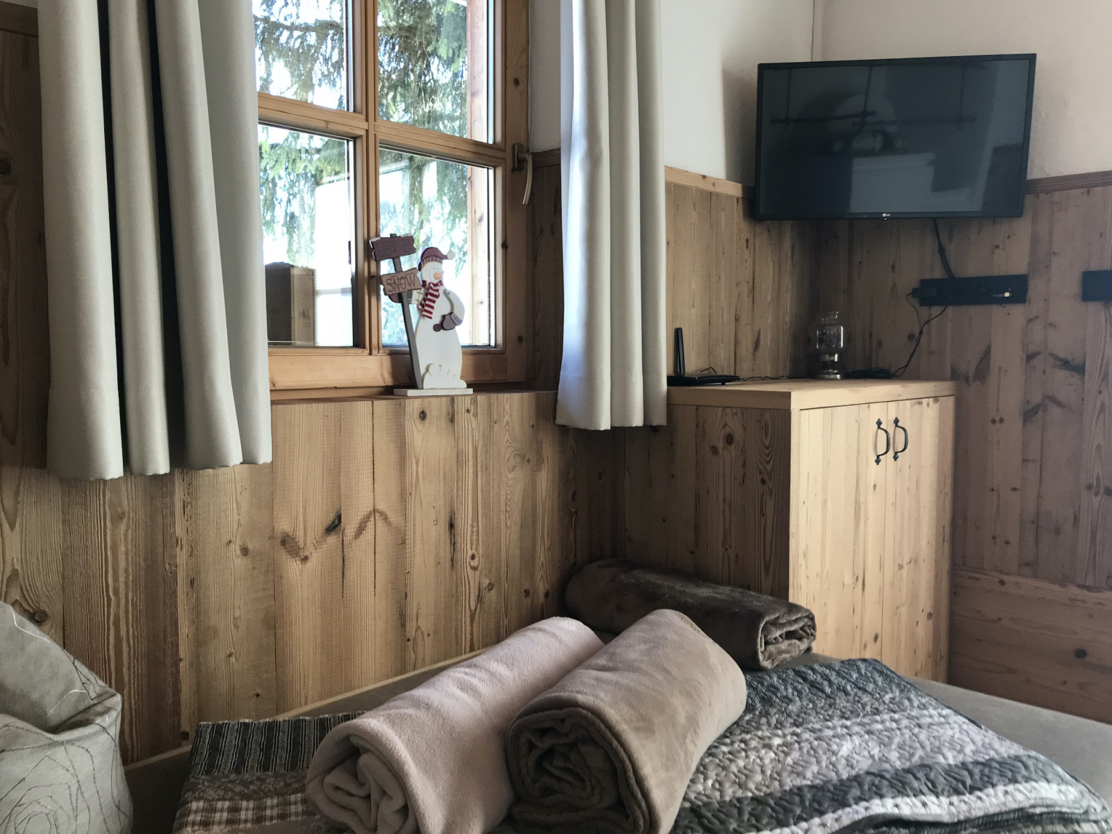 Das Chalet Julia bietet Platz für 2 bis 6 Personen. Es stehen Ihnen folgende Räumlichkeiten zur Verfügung: Großes Schlafzimmer (2 Etagenbetten), Kleines Schlafzimmer (1 Etagenbett), Wohnzimmer/Stube, Küche, Badezimmer mit Dusche/WC und eine Terrasse mit Panorama-Ausblick.