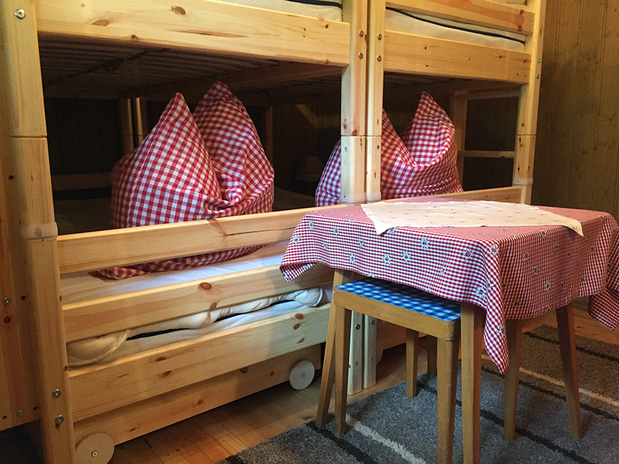 2 Etagenbetten für 4 Personen, Kleiderkasten, Tisch